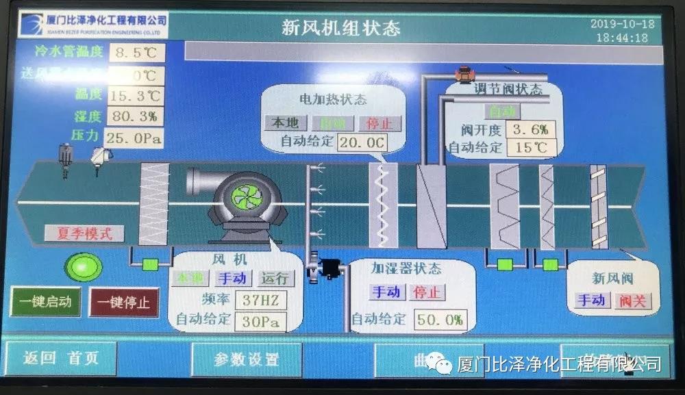 ◆設計特點 :空調凈化系統采用新風機組(MAU)+干盤管(DC)+風機過濾器單元(FFU), MAU+DC+FFU空調方式指的是室外新風經過新風機組(MAU)處理后送入潔凈室的天花技術夾層內,干盤管(DC)負責處理空氣至所要求的參數,然后用 FFU 來循環空氣從而達到潔凈度要求的換氣量,通常新風機組(MAU)將新風處理到室內露點溫度,承擔新風負荷及室內濕負荷,干盤管(DC)承擔室內的顯熱負荷, 風機過濾器單元(FFU)負責循環及過濾空氣,從而達到恒溫恒濕的效果。